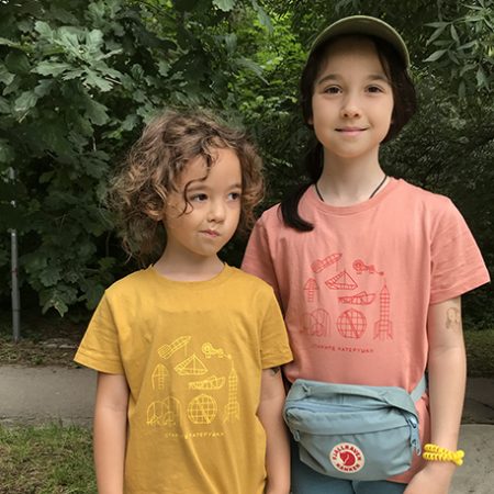 Kids organic cotton t-shirt with playgrounds print in yellow.